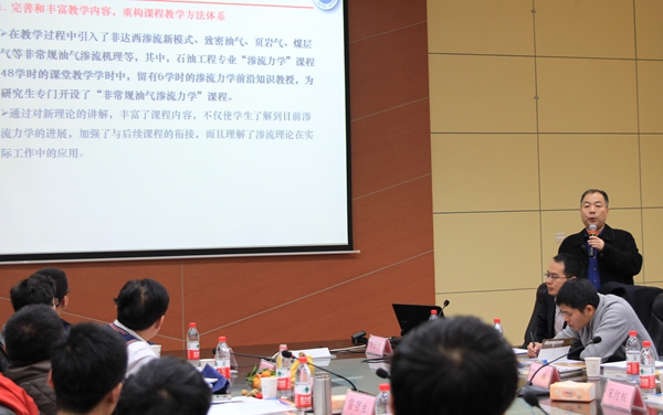 石油工業出版社高教分社社長徐秀澎介紹了此次研討會的組織過程。其他石油高校“滲流力學”課程負責人介紹了本校“滲流力學”課程建設方面的相關經驗。大家圍繞“滲流力學”課程建設的已有做法、未來規劃及存在問題進行了充分交流。