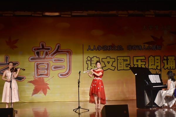 據悉,“秋之韻”詩文配樂朗誦活動已經舉辦了十一屆,為上萬名同學提供了展現風采的機會。“秋之韻”在豐富校園文化的同時,逐漸探索出了“院系推薦、專業教師導演、團委搭臺、學生表演”的人文素質培養模式。