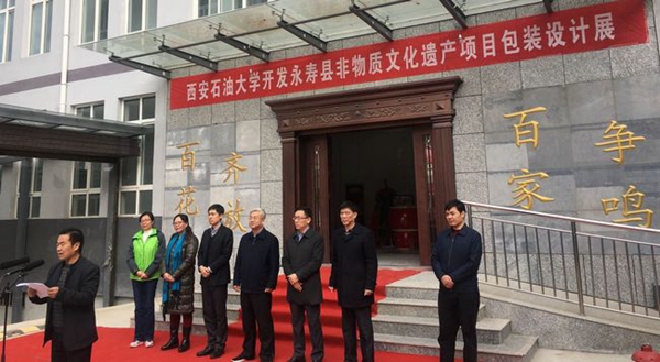 暑假期間,人文學院師生針對永壽縣非遺項目進行了實地考察,結合《包裝設計》課程對這些文化資產資源進行了市場化開發策劃與包裝設計。13日上午,“西安石油大學開發永壽縣非物質文化遺產項目包裝設計展”開幕式在永壽縣文化館舉行。李智軍副書記、雷西合副書記及校工會、人文學院負責人參加了開幕式。雷西合副書記表示,我校與永壽縣結成幫扶對子以來,在精準扶貧方面開展了卓有成效的工作。學校將繼續發揮科技、人才、專業等方面優勢,幫助永壽群眾走出貧困。校工會主席李方介紹了此次活動的目的和意義。