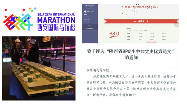 ——積極開展形式多樣的學習活動。根據學校工作安排,研究生院黨委認真組織,積極落實,配合學校開展研究生黨支部網絡答題活動,截止目前,600余名黨員參與完成率超過70%;落實黨支部書記網絡培訓,選送各年級優秀研究生黨支部書記13名參加培訓活動;配合黨委宣傳部,組織研究生積極參加“紅歌快閃”籌備活動;配合學校,發揮黨員、積極分子積極參加首屆西安國際馬拉松志愿者服務活動;聯合馬克思主義學院,組織研究生積極參加“陜西省研究生中共黨史優秀論文”評選活動。