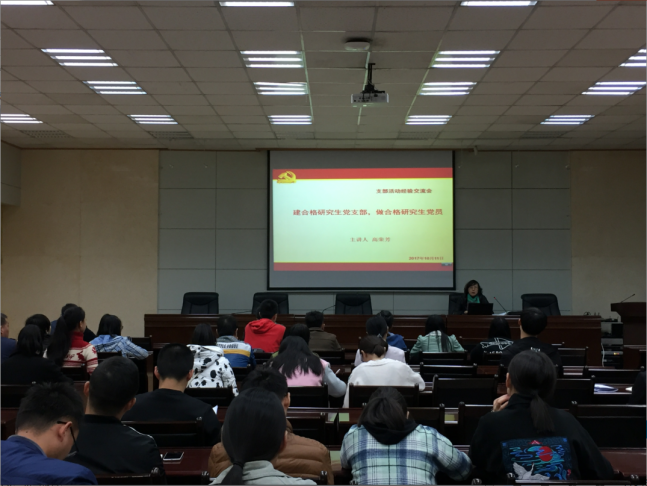——召開黨支部工作經驗交流會。10月11日下午,“喜迎黨的十九大,建合格黨支部,做合格黨員”研究生黨支部工作經驗交流會在雁塔校區會議中心第三會議室舉行。研究生院黨委書記高榮芳、黨委副書記范琦,全體輔導員及全院55個研究生黨支部干部、黨員骨干60余人參加會議。會上,5個研究生黨支部代表就如何擬定黨支部創新工作案例、如何上好黨課作了經驗交流。研究生院黨委書記高榮芳作了專題黨課講授,范琦副書記作了具體工作安排。會議同時就如何建設合格黨支部,做合格黨員進行了交流研討。