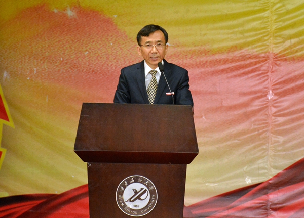 校黨委副書記張木代表學校對何榮校友一行的到來表示熱烈歡迎,對他支持學校發展、關愛貧困大學生的高尚善舉表示衷心感謝,并對廣大同學提出了三點希望:一要堅定信念、常懷感恩、志存高遠,積極投身實現中華民族偉大復興的時代洪流中。二要勤于實踐、艱苦奮斗、磨礪品質,為走上社會、服務人民、成就事業打下堅實基礎。三要刻苦鉆研、嚴謹篤學、奮發成才,努力成為創新型國家建設的未來骨干和中堅力量。