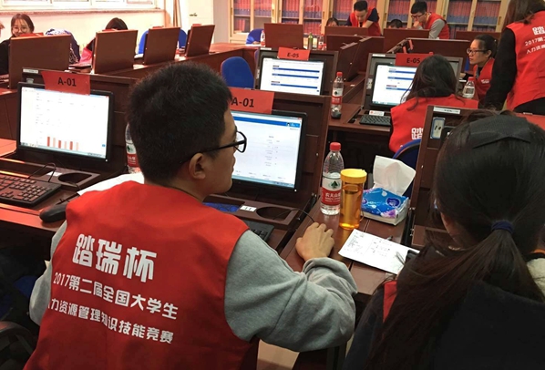 本次大賽是由全國人力資源開發研究會主辦,由上海踏瑞計算機軟件有限公司提供全面技術支持,面向全國人力資源管理專業大學生舉辦的一項重要賽事。為了在比賽中取得優異成績,我校隊員從9月初就開始訓練,隊員們前期熟悉比賽規則和流程,然后通過反復實戰模擬對抗積累經驗,最后分析總結形成自己的作戰戰略。比賽分為綜合實訓賽、競爭對抗賽和團隊答辯賽三個環節,我校隊員沉著應對,展示了良好的精神面貌和較強的專業技能。