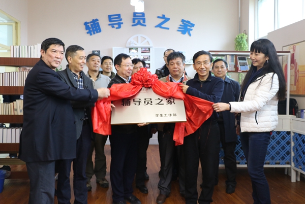 儀式上,張木副書記與學生工作部部長王宏衛、校工會主席李方、校工會副主席朱瑋共同為“輔導員之家”揭牌。