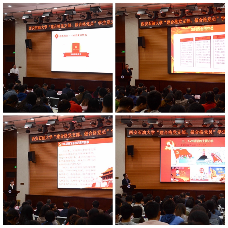 在黨的十九大勝利召開之際,為加強黨支部書記工作交流,落實“三會一課”制度,推進“兩學一做”學習教育常態化制度化,10月23日、10月24日晚,我校分別在雁塔校區學術報告廳和鄠邑校區就業指導中心多功能廳成功舉辦了“建合格黨支部、做合格黨員”教工黨支部書記和學生黨支部書記講黨課比賽。校黨委副書記雷西合出席大賽并講話。校黨委各部(辦)、院(系)級單位黨組織部分負責人和馬克思主義學院教師代表擔任比賽評委。各院(系)級單位黨組織書記、副書記,全校各黨支部書記及委員和黨員代表觀摩了本次比賽。