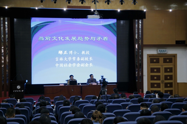 10月18日下午,吉林大學常務副校長、博士生導師,中國社會學會副會長邴正教授應我校邀請,在雁塔校區學術報告廳為我校師生作了題為《當代文化發展趨勢與矛盾》的學術報告。學校處、科級干部,人文學院、馬克思主義學院教師,研究生代表近300人參加了報告會。報告會由校黨委副書記雷西合主持。