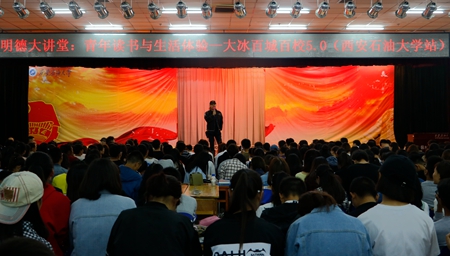 9月25日晚,由校團委主辦、理學院團委承辦的第五十期明德大講堂之《青年讀書與生活體驗》在鄠邑校區騰輝大學生活動中心舉辦。著名主持人、暢銷書作家大冰擔任主講,新校區四百余名學生聽取了講座。
