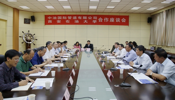 9月13日上午,中國石油天然氣集團公司中油國際管道有限公司總經理孟繁春、副總經理兼安全總監張鵬、總經理助理兼中哈天然氣管道合資公司總經理鐘凡、總經理助理兼中烏天然氣管道合資公司總經理李琳、總經理辦公室主任武冠軍一行五人來校訪問考察。雙方合作座談會在雁塔校區第一會議室召開,我校校長屈展出席座談會,副校長陳軍斌主持會議。