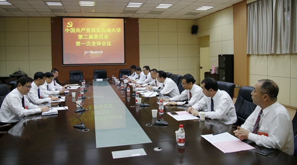 6月23日下午,中國共產黨西安石油大學第二屆委員會第一次全體會議在雁塔校區會議中心第一會議室召開,賽云秀同志主持會議并講話,新當選的12名黨委委員參加了會議。