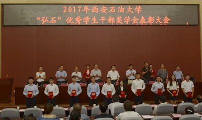 會上,合作發展處處長蔡上游介紹了弘石基金設立的相關情況。弘石基金委員會委員、機械工程學院徐建寧教授宣讀了《西安石油大學2017年度“弘石”基金委員會表彰決定》,大會對30名優秀學生干部進行了表彰。
