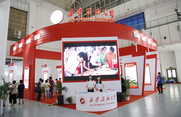 我校展區位于曲江國際會展中心核心展區A館。展臺設計采用彩色圖文展板、實物展品、LED顯示、宣傳彩頁等多種形式,對我校66年來的辦學歷史以及近年來在教學科研、人才培養、國際教育、交流合作等方面取得的成績進行了全方位展示,并著重突出了石油石化特色。為做好招生咨詢服務,各院(部、系)教師代表、招生辦公室工作人員、學生志愿者紛紛為前來咨詢的家長和學生提供信息咨詢服務。