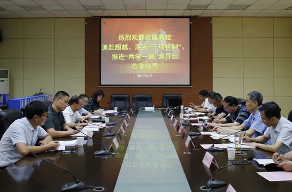 賽云秀書記對賈崇吉一行來校開展督導工作表示歡迎,并從三個方面介紹了我校追趕超越工作的開展情況。一是制定了關于追趕超越工作的相關方案,提出了追趕超越十項重點工作。校領導分別牽頭負責十項重點工作,各牽頭單位和配合單位負責細化任務,組織實施。二是明確追趕超越工作的方法和路徑,全力推進追趕超越工作。追趕超越的目標不是單一的,首先要跟自己比,其次跟對標單位比,再次跟更高層次的目標比,在“比學趕幫超”中提高辦學水平。三是明確考核指標和考核要求,緊抓追趕超越工作落實。通過自查(評)和互查(評)相結合、巡視檢查、雙周研判等方式,學校對各部門目標任務完成情況進行考核,并將考核情況作為季度考核和年終考核的重要依據。