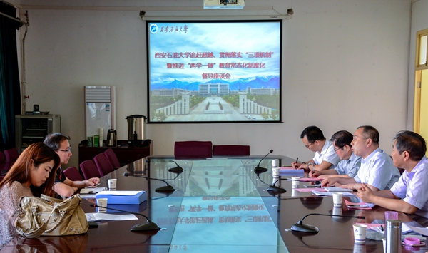 6月2日上午,省屬高校追趕超越、貫徹落實“三項機制”和推進“兩學一做”學習教育常態化制度化督導組專家——西安工業大學機關黨委書記、統戰部部長何春水和省教育廳科學技術處主任科員周淼來我校督導工作。