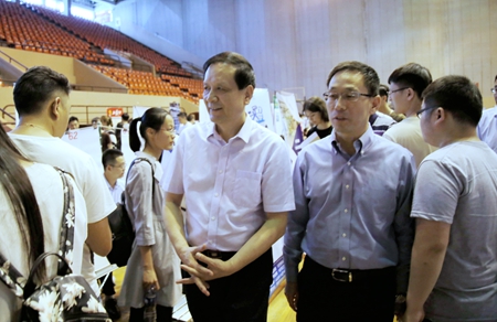 陜西省教育廳副巡視員李鳴、省教育廳學生處處長唐澍、校黨委副書記雷西合到招聘會現場指導工作,并在第四會議室組織召開了參會高校就業部門負責人和部分家庭建檔立卡未就業畢業生座談會,詳細了解了學生家庭及就業進展情況,向各高校傳達了省教育廳關于家庭經濟困難畢業生就業幫扶工作的最新會議精神。