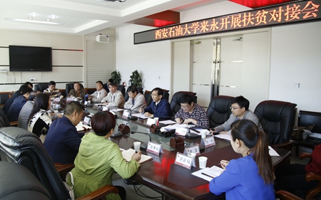 根據近期全省高校結對幫扶貧困縣工作會議部署,5月8日,校扶貧領導小組副組長,校黨委副書記張木、副校長楊戰社帶領學校扶貧辦公室成員赴永壽縣人民政府、永平鎮、堅固村進一步開展扶貧結對對接調研。永壽縣委常委、副縣長樊莉霞及縣委縣政府有關部門負責人;縣委常委、紀委書記張振乾,副縣長任各,永平鎮鎮長秦立飛;堅固村黨支部書記成軍平、村民委員會主任李小勇等分別與學校對接調研組進行了座談交流。
