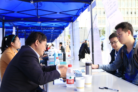 4月21日,我校2017屆畢業生第四場綜合招聘會在新校區圖書館南廣場舉行。中化石油浙江有限公司、中石化河南油建工程有限公司、陜西東嶺集團、中石化第四建設有限公司等150余家單位、300余名代表參會,我校及兄弟院校畢業生共2000余人參加了招聘會。