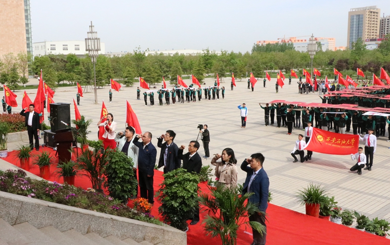 4月21日上午,為紀念建團九十五周年,深入開展“學習習近平總書記講話,做合格共青團員”教育實踐,大力推進從嚴治團,切實增強團員的先進性和光榮感,我校團委在新校區圖書館北廣場隆重舉辦“不忘初心跟黨走”紀念建團九十五周年活動啟動儀式暨千人重溫入團誓詞活動。校黨委副書記張木、團省委學校部部長潘磊出席活動。西安建筑科技大學、西安體育學院、陜西國防工業職業技術學院、西安醫學高等專科學校等四所駐戶縣兄弟院校和我校團委負責人,各院(系)團委書記、團干部及新校區1500余名團員青年參加了活動。