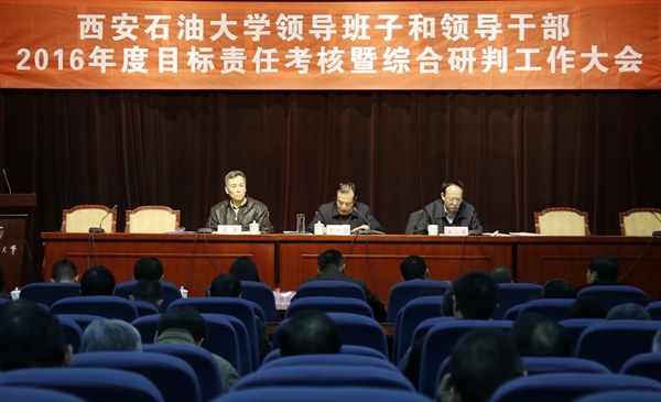 3月24日上午,省委組織部、省委高教工委在我校學術報告廳召開了西安石油大學領導班子和領導干部2016年度目標責任考核暨綜合研判工作大會。省屬高校領導班子和領導干部目標責任考核暨綜合研判第二工作小組組長、陜西省干部教育辦公室副主任郭文超出席會議并講話。校黨委書記賽云秀主持大會。省紀委駐教育廳紀檢組副組長易紅彬、省教育廳離退處副處長王亞麗、省委組織部宣教干部處主任科員李芃、省委高教工委組織部干部馮政清、西安理工大學人事處干部程瑤等考核組成員,我校校領導、校黨委委員、紀委委員、學術委員會委員、工會委員,正高職稱專業技術人員,正處級以上領導干部,市級以上人大代表、政協委員,民主黨派主要負責人,近三年退休的校級領導干部參加大會。