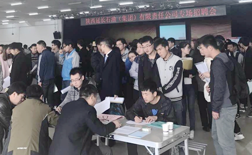 3月8日上午,陜西延長石油(集團)有限責任公司專場招聘會在騰輝大學生活動中心舉行。陜西延長石油(集團)有限責任公司下屬的12家單位、20余名招聘代表來校選聘畢業生。全校相關專業2000余名畢業生有序參會。