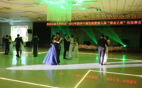 舞會現場燈光搖曳,氣氛浪漫,團學干部伴著一支支舞曲輕盈起舞。“黑金之夜”團學干部交流會是校團委、校學生會為鼓勵各級團學干部在過去一年中為學校校園文化、實踐育人、學風建設等各項工作中做出的貢獻,特地舉辦的一個便于團學干部相互溝通、相互交流的活動,有助于提高我校團學干部的綜合素質及營造良好的校園氛圍。
