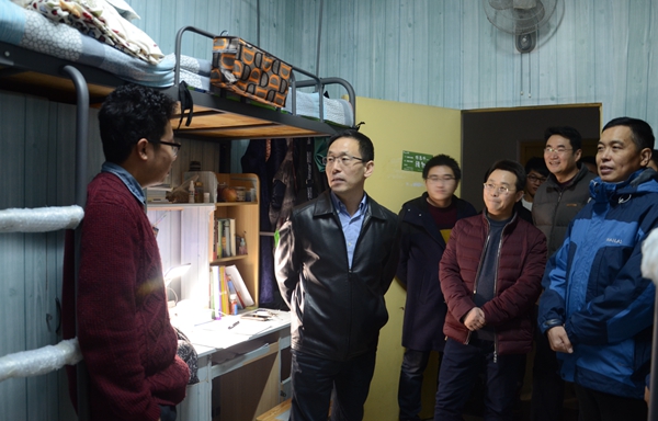 12月30日晚,校黨委副書記雷西合深入新校區學生宿舍,看望慰問了廣大學生。學生工作部、各院(部、系)相關負責人陪同。