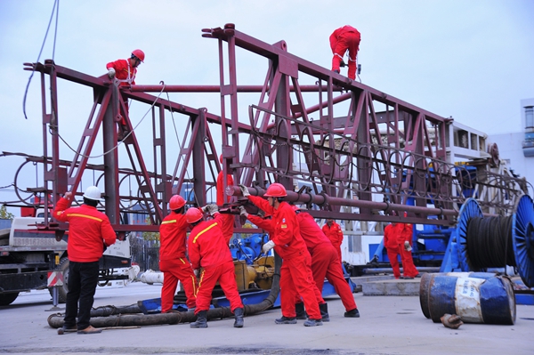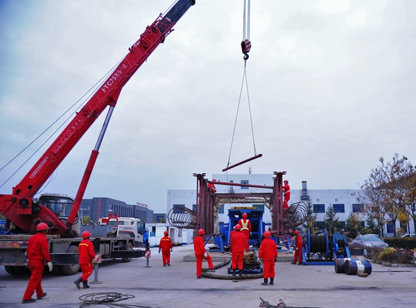 石油鉆機(jī)從運(yùn)輸?shù)桨惭b完成共歷時(shí)8天。長(zhǎng)慶鉆井總公司有關(guān)負(fù)責(zé)人、工程師、技術(shù)員在現(xiàn)場(chǎng)指導(dǎo),40656鉆井隊(duì)的工人們克服了降雪天氣等方面困難精心施工,保證了鉆機(jī)安裝工作的順利完成。
