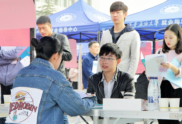 全體就業(yè)工作干部深入招聘會現(xiàn)場,積極向用人單位代表介紹我校專業(yè)設置及人才培養(yǎng)特色,溝通了解企業(yè)發(fā)展及人才需求情況,點對點地推薦畢業(yè)生和指導學生簽約。此次綜合招聘會是針對2017屆畢業(yè)生的第二場大型招聘會,共計提供就業(yè)崗位4000余個,需求專業(yè)涉及石油石化、機械電子、計算機、經(jīng)管、外語、藝術(shù)設計等40余個專業(yè)。