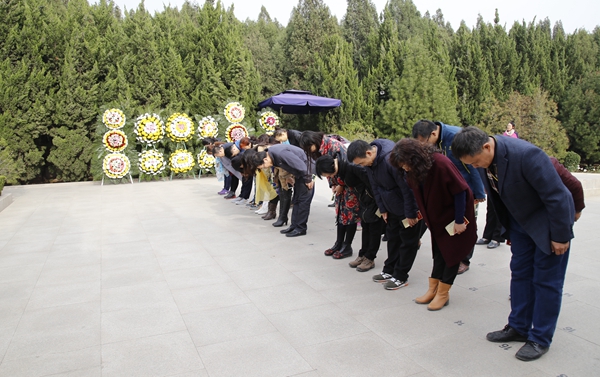 民主黨派成員向陵墓及雕像鞠躬致敬
