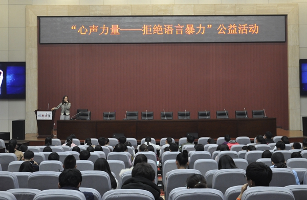 11月17日晚,由陜西廣播電視臺(tái)896汽車調(diào)頻《長(zhǎng)安夜話》節(jié)目發(fā)起,團(tuán)省委青少年權(quán)益維護(hù)中心、陜西省律師協(xié)會(huì)共同支持的“心聲力量——拒絕語言暴力”公益活動(dòng)在我校新校區(qū)舉辦。知名主播曉輝、馬小路、馬大帥擔(dān)任主講嘉賓,此次活動(dòng)由校團(tuán)委承辦。