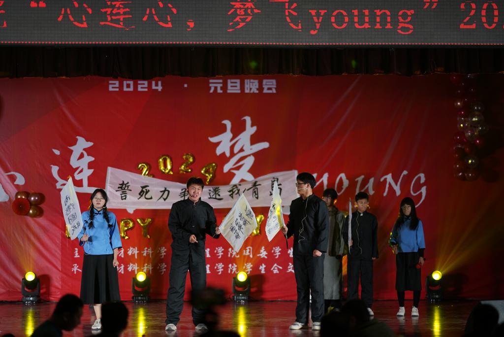 萬象更新,喜迎元旦。12月24日晚,材料科學與工程學院在鄠邑校區騰輝大學生活動中心舉辦“心連心,夢飛young”2024年元旦晚會,副校長張驍勇,校黨委宣傳部常務副部長趙承勝、學生工作部部長王亮、學院黨委書記林紅先出席晚會,學院黨委副書記張云姿,各學院教師及學生等400余人觀看晚會。