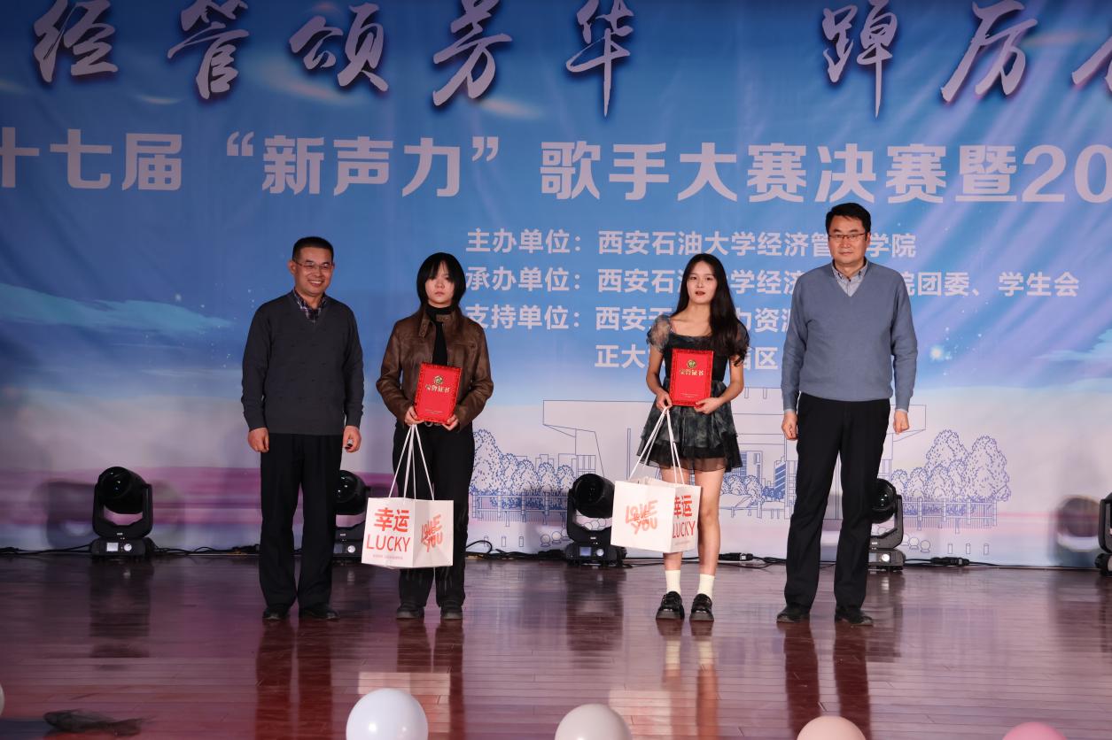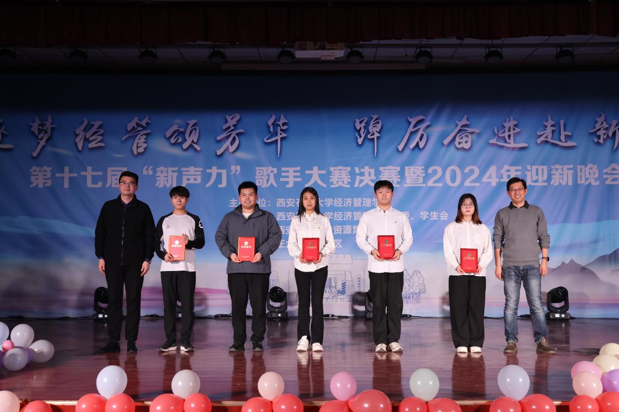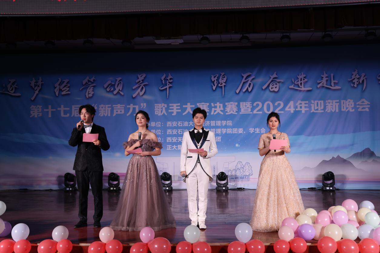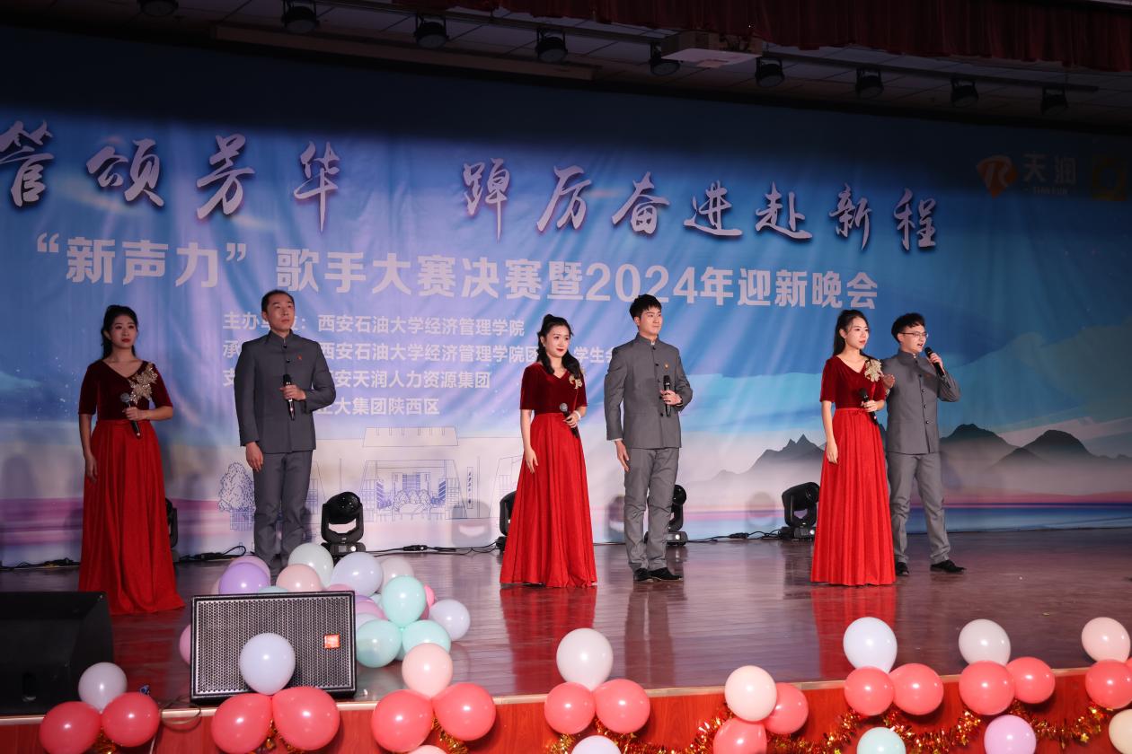 12月27日,經濟管理學院第十七屆“新聲力”歌手大賽決賽暨2024年迎新晚會在我校鄠邑校區騰輝大學生活動中心成功舉辦。晚會支持單位代表、天潤人力集團高級合伙人、陜西天潤德凱信息技術有限公司總經理、經濟管理學院2012屆人力資源管理專業畢業生徐超應邀出席。校黨委副書記、紀委書記王輝強,總會計師樊曉民出席晚會并頒獎。黨政辦公室(鄠邑校區管理辦公室)、統戰部、學生工作部、校團委、計算機學院負責人,經濟管理學院黨政負責同志、各教工黨支部書記、各系辦主任和師生代表500余人參加晚會。
