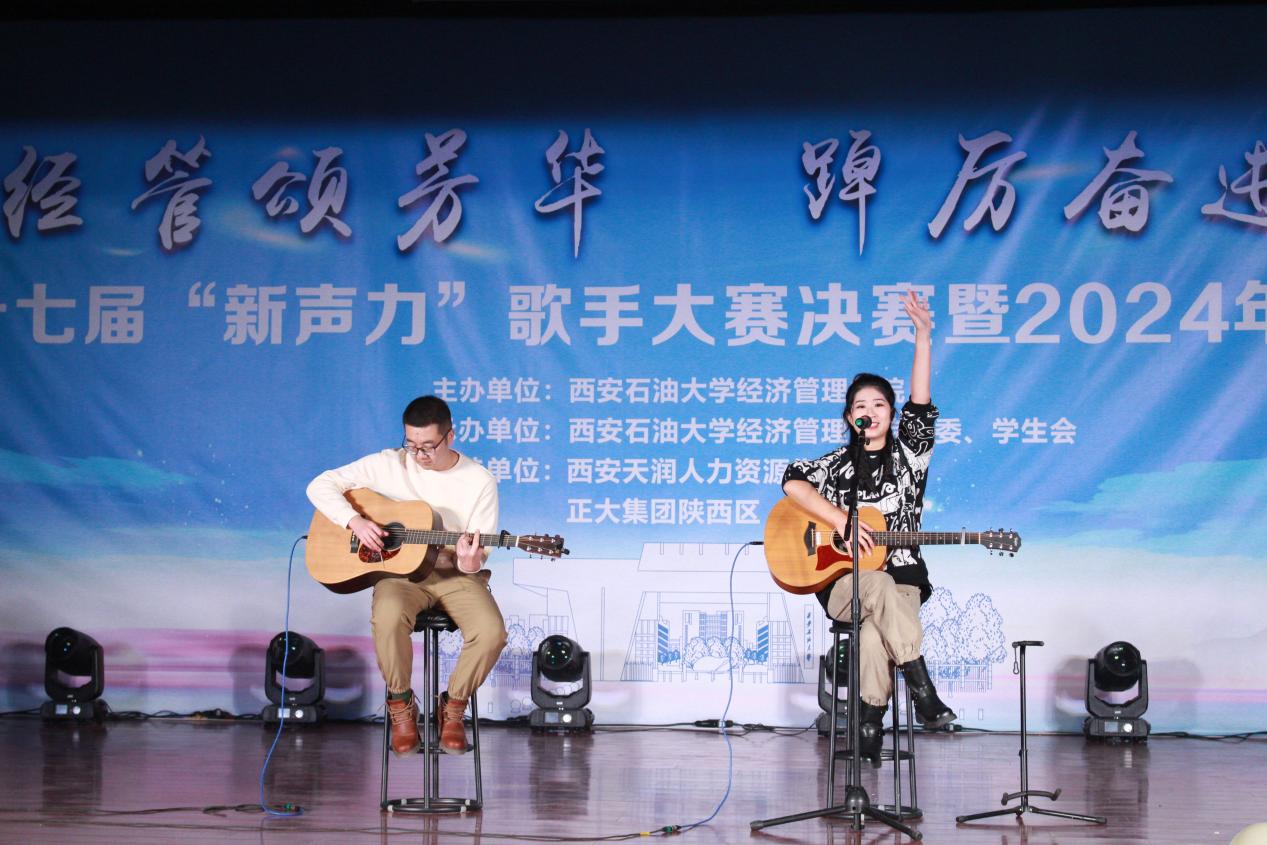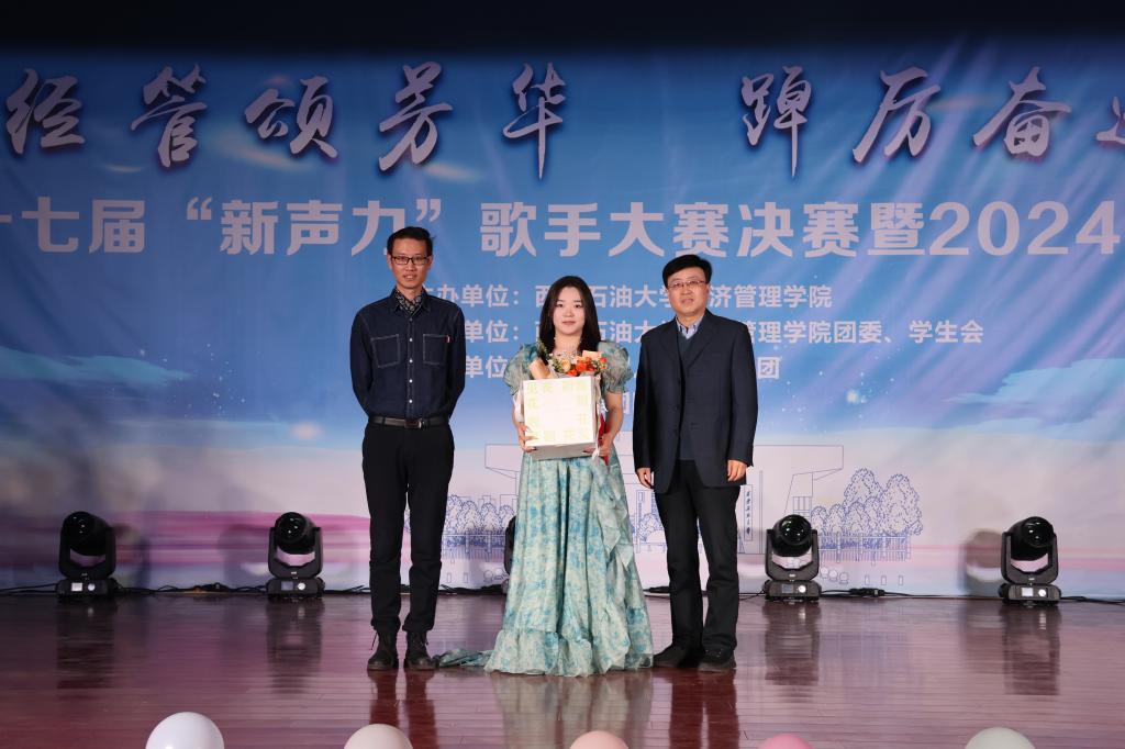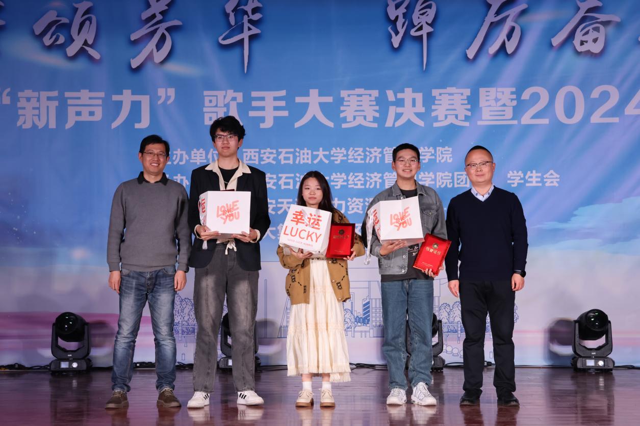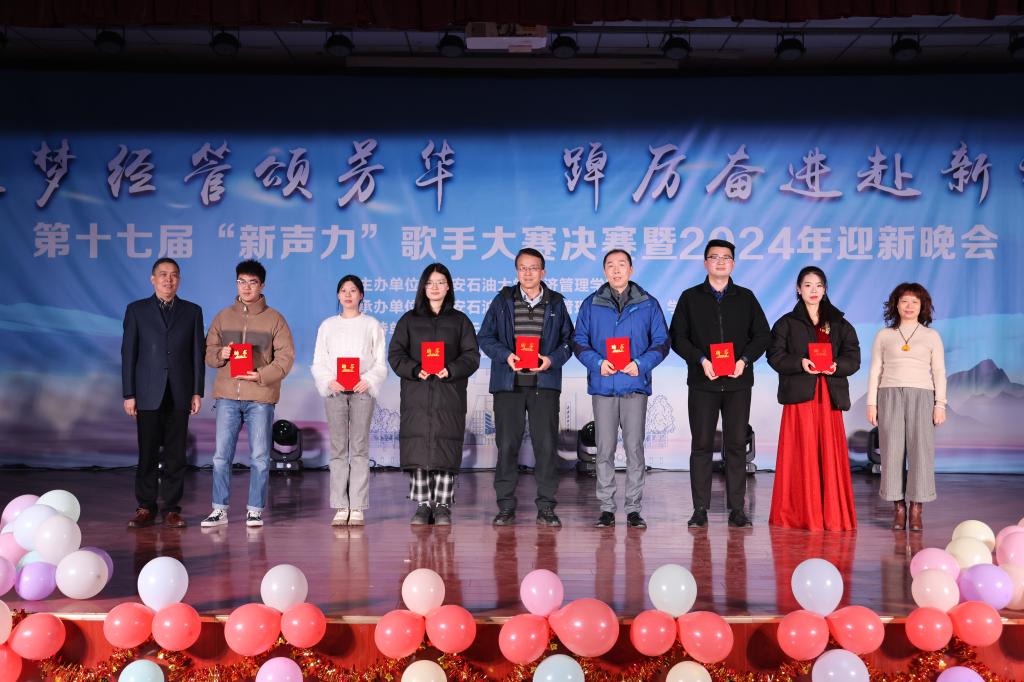 12月27日,經濟管理學院第十七屆“新聲力”歌手大賽決賽暨2024年迎新晚會在我校鄠邑校區騰輝大學生活動中心成功舉辦。晚會支持單位代表、天潤人力集團高級合伙人、陜西天潤德凱信息技術有限公司總經理、經濟管理學院2012屆人力資源管理專業畢業生徐超應邀出席。校黨委副書記、紀委書記王輝強,總會計師樊曉民出席晚會并頒獎。黨政辦公室(鄠邑校區管理辦公室)、統戰部、學生工作部、校團委、計算機學院負責人,經濟管理學院黨政負責同志、各教工黨支部書記、各系辦主任和師生代表500余人參加晚會。