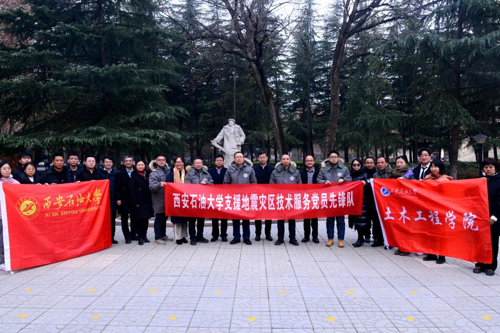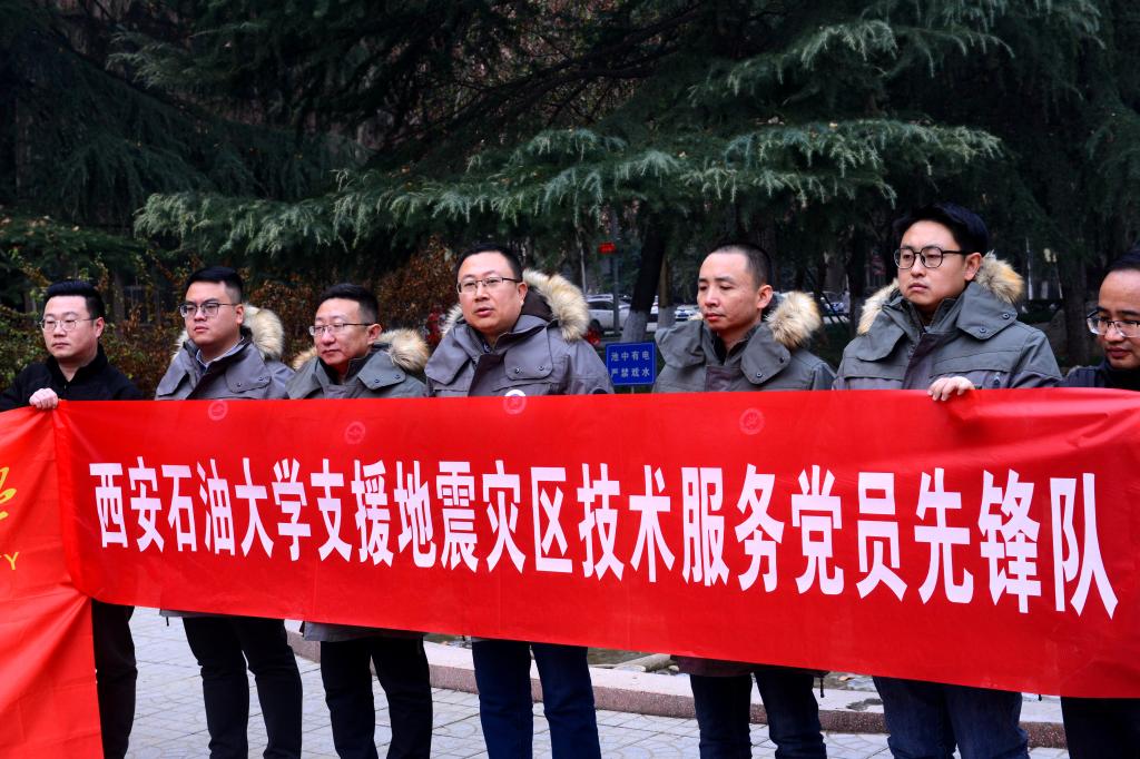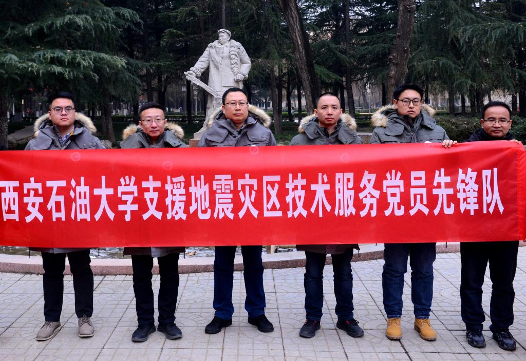 12月28日,接到工作任務后,土木工程學院迅速部署開展相關工作,面向全院教職工發出倡議,得到了積極響應。當晚,按照選優配強標準,經學院統籌研究決定,由學院黨委書記陳濤率隊,代建波、蘭官奇、朱熹育、孫杲辰4位老師組建我校第一批“西安石油大學支援地震災區技術服務黨員先鋒隊”奔赴災區支援,5名隊員均為黨員、博士、學院技術骨干。其余報名教職工自發成立后備隊伍,時刻準備應援。