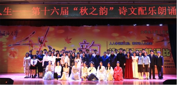 12月29日晚,由校團委、人文學院、教務處和教師工作部主辦,人文學院中文系、校學生會承辦,陜西省中華經典誦寫講西安石油大學基地協辦的“經典里的人生”第十六屆“秋之韻”詩文配樂朗誦比賽在我校鄠邑校區騰輝大學生活動中心成功舉辦。校黨委副書記張木、副校長張君濤,相關院系、職能處室負責人及400余名師生觀看了比賽。