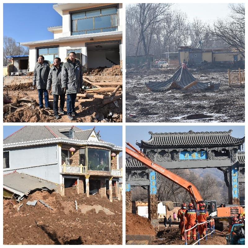 在完成青海省抗震救災工作任務后,1月4日,先鋒隊前往本次災情最為嚴重的青海省海東市中川鄉金田村、草灘村和甘肅省臨夏州積石山縣大河家鎮陳家村、陽洼村進行了實地踏勘,詳細了解震中地區受災情況,完成了泥石流土樣采集、震害特征影像收集、受災民眾隨訪,形成了以工作日志、震害機理分析、總結報告組成的完整資料體系。