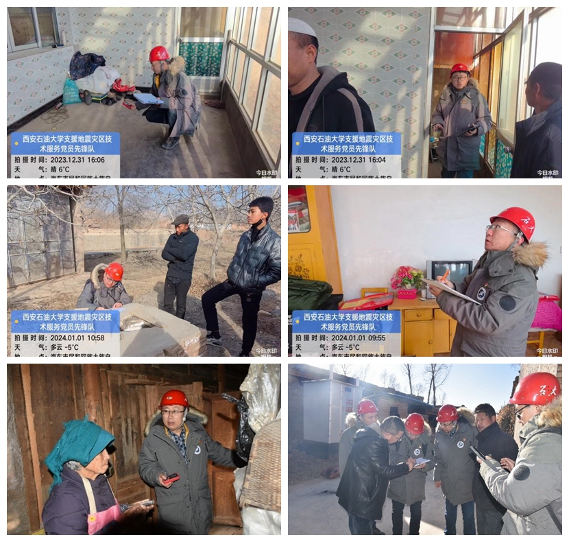 先鋒隊本次前往地震災區的主要工作任務是對受災地區村民房屋的安全性進行鑒定。先鋒隊一行于12月29日晚抵達青海省民和回族土族自治縣。在駐地,先鋒隊學習了青海省住建廳發布的《甘肅積石山縣6.2級地震青海災區受損房屋建筑及市政基礎設施安全鑒定工作方案》《地震受損房屋安全鑒定工作手冊》等本次抗震救災技術文件。同時,先鋒隊積極對接當地抗震救災指揮部,約定第二天上午見面并對接具體任務。12月30日清晨,青海省住建廳領導在抗震救災指揮部接見先鋒隊一行。先鋒隊代表西安石油大學表明來意,介紹了人員配置、技術力量等情況,隨即申領具體任務,部署開展相關工作。