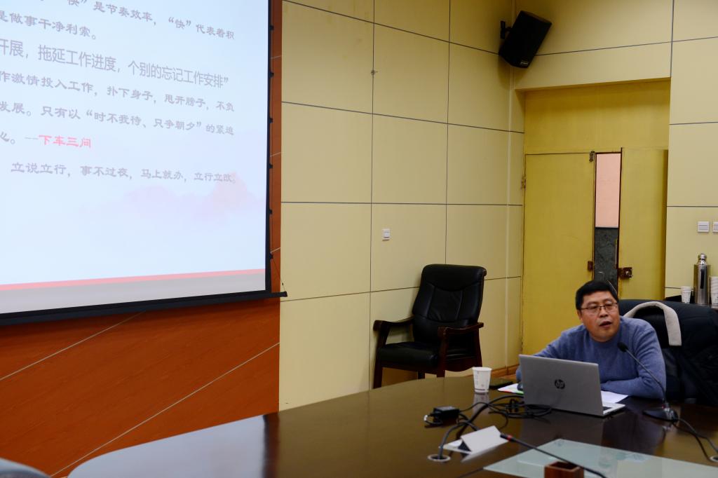 會前,教務處邀請馬克思主義學院黨總支書記張偉作了題為《弘揚鐵人精神 踐行優良作風》的專題報告,報告從鐵人簡介談起,并從鐵人精神內涵、作風建設重要意義、踐行優良作風三個方面全面闡述。報告內涵豐富、目標明確,對本科教育教學工作起到一定的實踐指導意義。