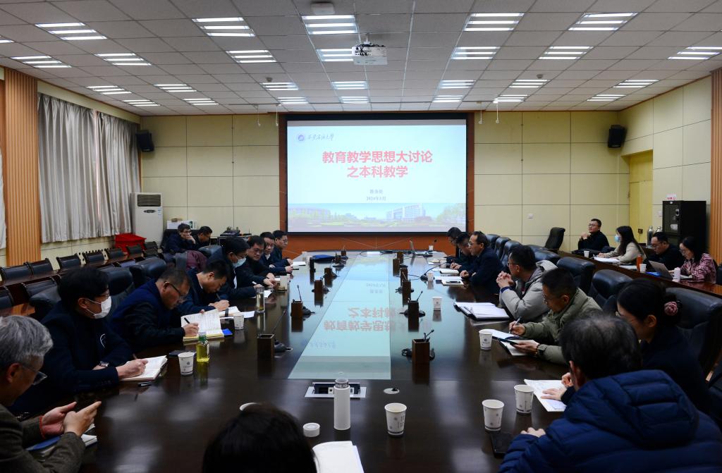 張君濤指出,開展“本科教育教學思想大討論”活動,是深入學習貫徹習近平新時代中國特色社會主義思想,全面學習宣傳貫徹落實黨的二十大精神的重要舉措,對進一步統一思想、凝聚共識,深化本科教育教學改革,構建高質量教育教學體系,全力做好本科教育教學審核評估評建工作,全面提高人才培養質量具有重要意義。他強調,一是提高政治站位,統一思想,深刻認識大討論的重要意義。開展本科教育教學思想大討論,是準確把握學校“辦學定位”與“人才培養目標”的需要,也是新時代教育教學改革的迫切需要。二是緊扣主題,以高質量討論推動本科教育教學高質量發展。圍繞從應用型人才培養到學術型人才培養的轉變,準確把握人才培養目標定位,轉變教育教學理念,構建“五育并舉”育人體系;持續推進專業升級改造,不斷優化課程建設,推進產教融合、科教融匯,強化培養人才的創新創業能力。三是夯實責任,取得實效。廣泛動員,確保全員參與,形成具有自身特色的教育教學改革具體思路與特色做法;強化作風建設,激發擔當作為,全力做好審核評估預評估整改工作。