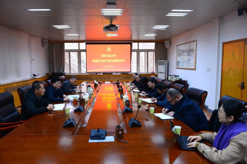 3月4日上午,校黨委副書記、紀委書記、監察專員王輝強在雁塔校區行政樓五樓會議室與新提任處級干部開展集體廉政談話。會議由校紀委副書記齊仲鋒主持。