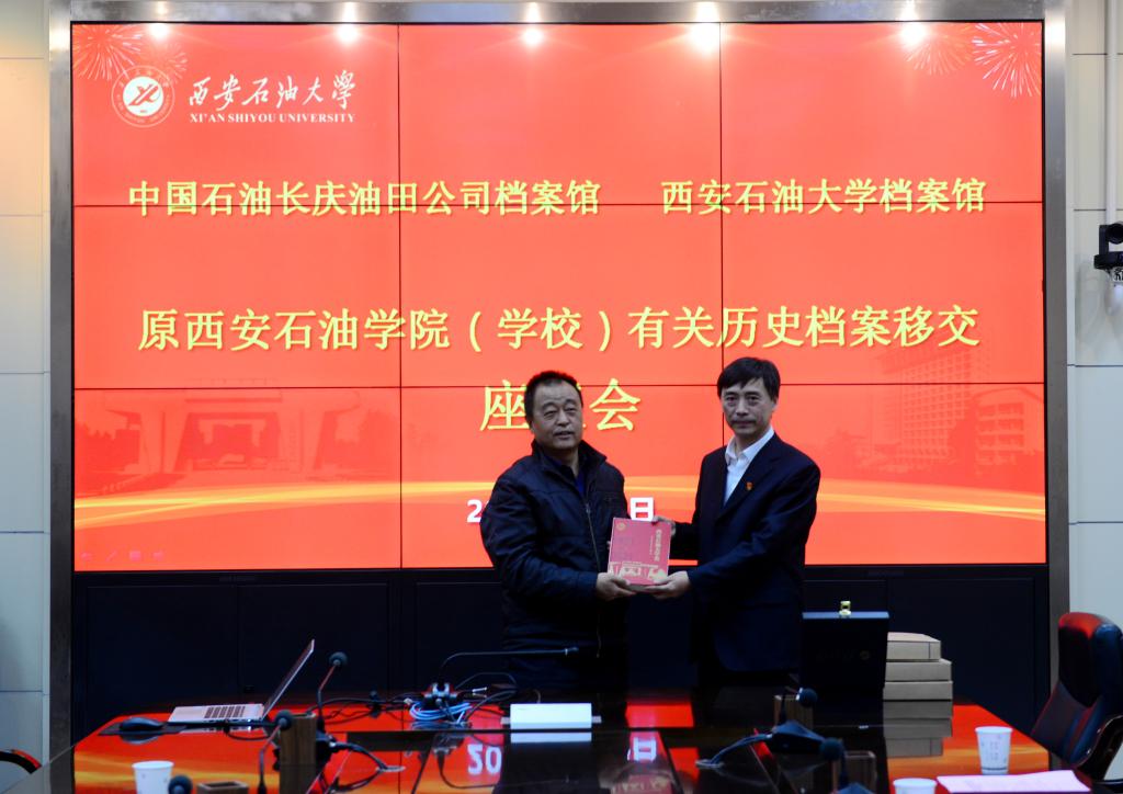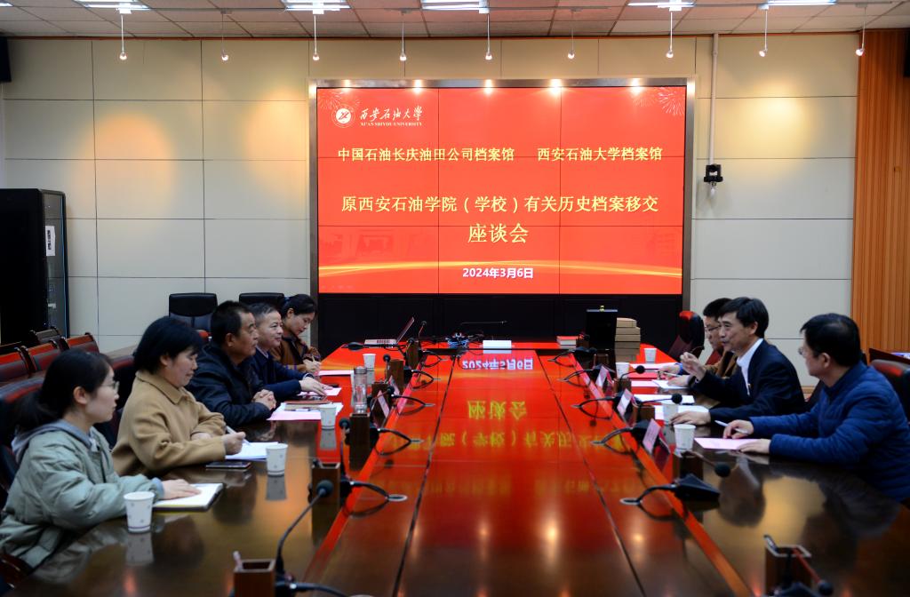 3月6日下午,中國石油長慶油田公司檔案館、西安石油大學檔案館原西安石油學院(學校)有關歷史檔案移交座談會在雁塔校區會議中心第二會議室舉行。副校長程永清,中國石油長慶油田公司檔案館副館長符京生出席會議并講話。