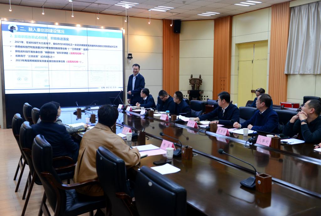 會上,我校科技處處長張益詳細匯報了我校在融入秦創原平臺建設、實施科技成果轉化“三項改革”方面的進展與成效,并闡述了下一步重點改革措施的和工作規劃。