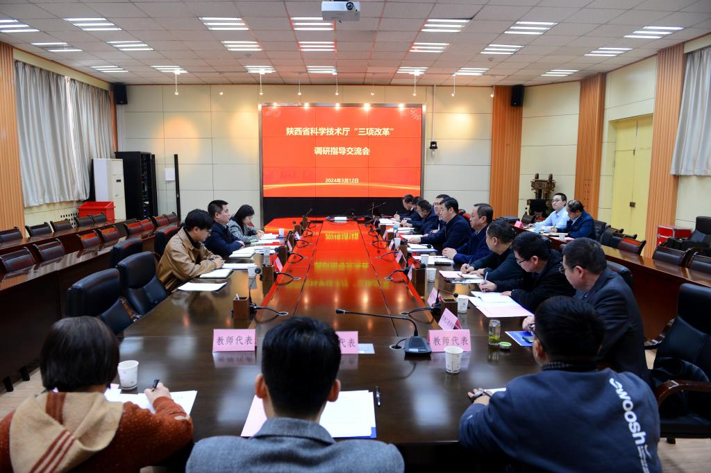 3月12日下午,陜西省科技廳副廳長王軍來校調研科技成果轉化“三項改革”工作進展情況。會議在雁塔校區會議中心第二會議室舉行,我校校長王進富出席會議,副校長張榮軍主持會議。