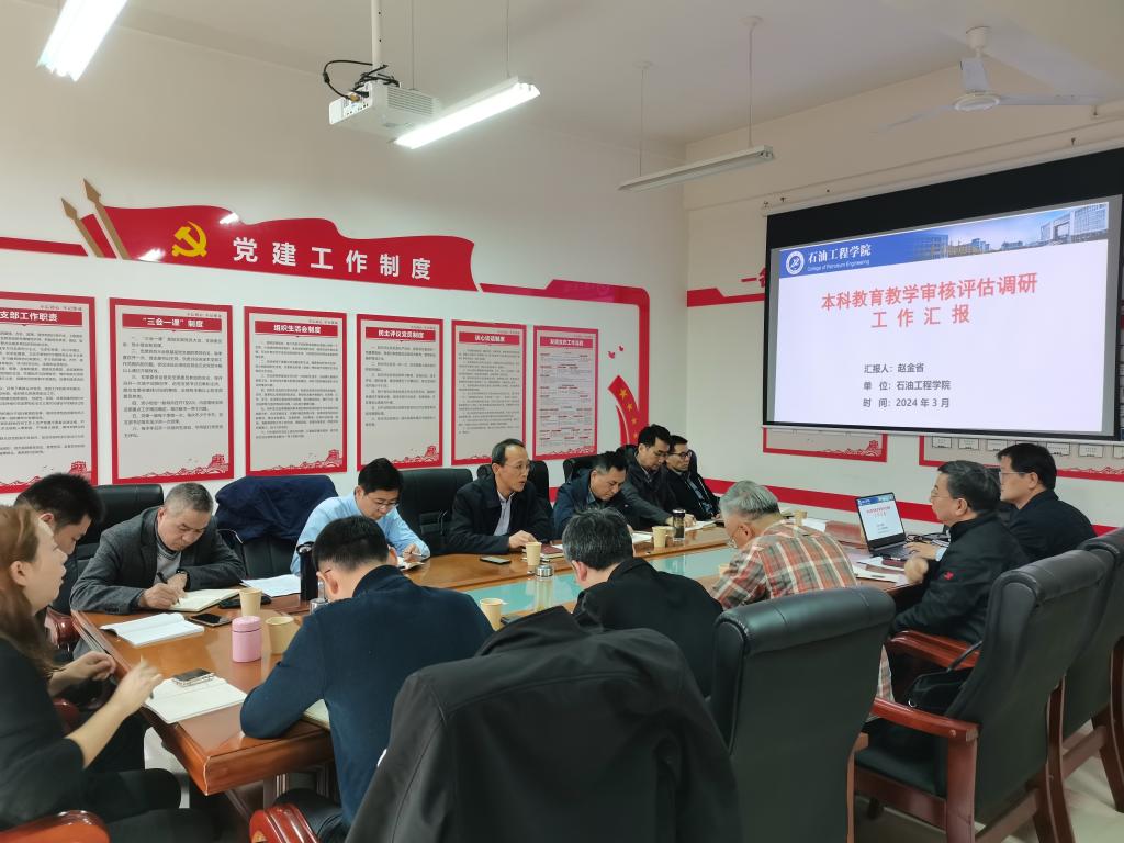 3月12日下午,副校長張君濤帶隊深入石油工程學院調研指導本科教學審核評估工作。黨政辦公室、學生工作部(處)、教師工作部、人事處、教務處、實驗室管理處、高教研究與評估中心、創新創業中心等部門負責人,學院領導、各系(教研室)主任參加了調研會議。會議由學院黨委書記司馬文龍主持。