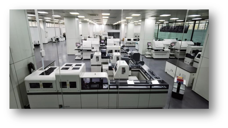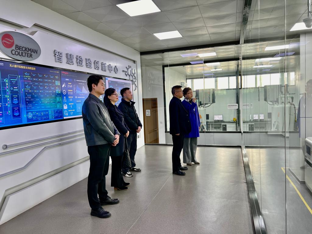 張驍勇一行實地參觀了智慧化無人值守智慧化檢驗實驗室、臨床分子實驗室、微生物及藥敏實驗室、質量安全管理部和與三橋社區衛生服務中心合作共建實驗室,了解了全國首個擁有無人值守全自動檢驗流水線的醫學檢驗實驗室在充分運用“互聯網+”技術搭建人工智能平臺,實現送檢標本從分揀、檢驗、審核到存儲、復檢的全流程智慧化運行情況。座談環節,張驍勇向西安區域醫學檢驗中心簡要介紹了學校基本情況、醫療工作現狀以及發展愿景。張曉勇提到今年是我校貫徹落實學校第三次黨代會的開局之年,開啟了學校各項事業高質量發展的新征程,做好醫療等重要民生工程,構建以人為本、可持續發展的一流保障體系是學校高質量發展的基礎,希望通過雙方進一步深化合作,推動優質檢驗資源下沉擴容,發揮西安醫檢體系優勢和平臺作用,為我校廣大師生提供便捷、精確的醫學檢驗服務。