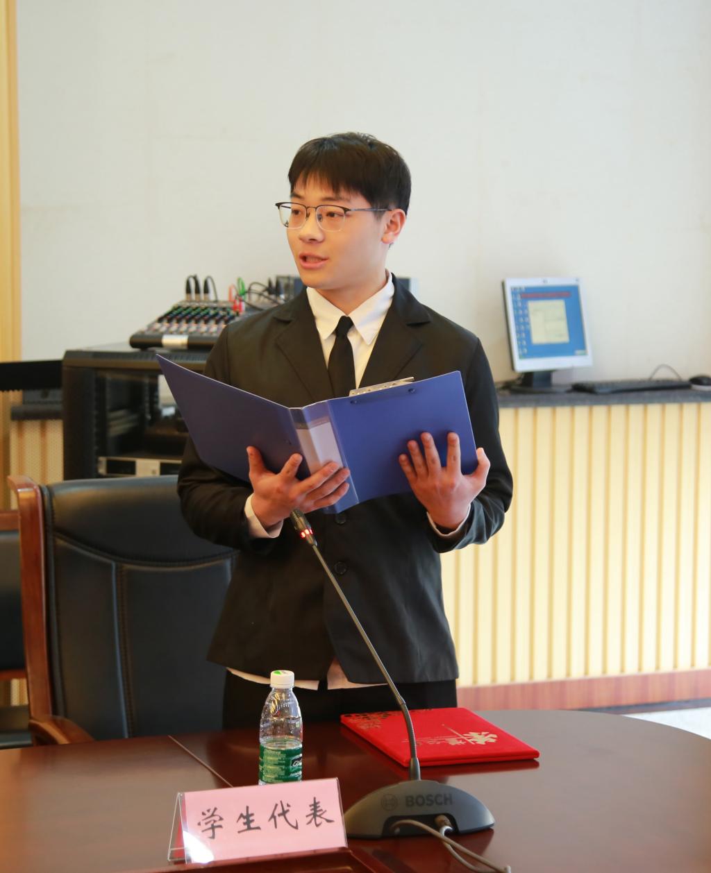 隨后進行了“菁英人才獎學金”頒獎儀式,“菁英人才”獎學金獲得者代表材料科學與工程學院徐劍同學發言。