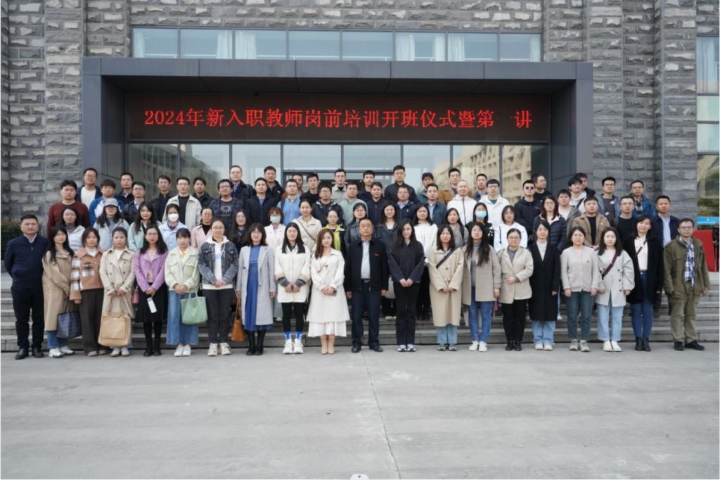 3月25日下午,我校2024年新入職教師崗前培訓在鄠邑校區圖書館第一會議室順利開班。副校長程永清出席開班儀式,并為新入職教師作《賡續紅色血脈 踐行教育家精神》專題講座。開班儀式由教師工作部副部長董丙劍主持,教師工作部工作人員和78名新入職教師參加。
