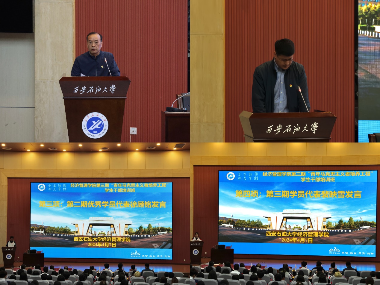 談建勤在總結時指出,廣大青年學生干部應當發揮先鋒作用,踐行鐵人精神,汲取前進力量,努力做黨的事業的忠誠擁護者和堅定實踐者。他希望與會學生干部要仰望星空、腳踏實地,向善向上、陽光自信,勇立潮頭、勇爭第一。學院團委書記李博文宣讀了本期培訓班的培訓通知及考核要求,學院第二期培訓班優秀學員代表徐顧銘與第三期培訓班學員代表裴映雪分別發言。