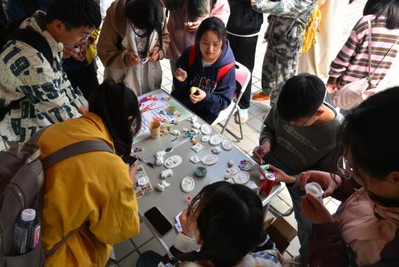 心理委員聯合協會組織的“以體強心”展臺主題為“手腳并用向前沖”,同學們在肢體運行中打破尷尬、突破自我;“以美潤心”展臺主題為“塑說心靈”,參與石膏畫制作的師生沉浸其中,獲得感滿滿;“以勞健心”展臺主題為“工具來相認”,同學們識別各種勞動工具,在勞動教育中提升技能。