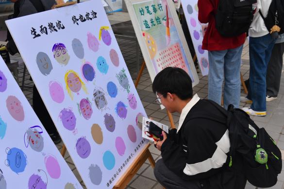 心理協會組織的“以德育心”展臺主題為“尋找缺失的一角”,引導同學們發掘優勢,探索目標,找準個人發展方向;“以美潤心”展臺主題為“眾人涂鴉”和“詩歌拼貼”,同學們通過活動打破性別刻板印象,在創造中展示個人風采。