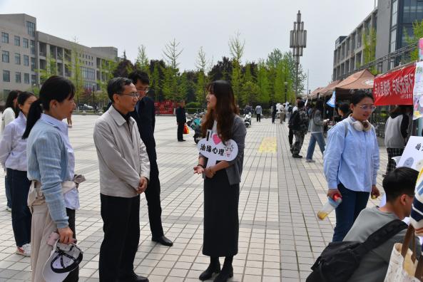 活動現場,張木親臨每個展臺,并與學生們交流了生活、學習、人際交往的感受,向院(系)心理專干和班級心理委員了解了“一院一品”創意與日常工作中的困難,在各展臺詢問了每項活動的心理意義,并參與體驗了一些項目,對此次“油緣會”戶外體驗活動給予了充分肯定,并鼓勵多舉辦師生喜聞樂見的心理育人實踐活動。